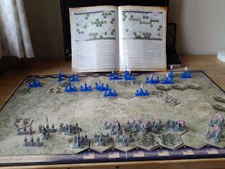 I decided to take on the role of the Rebels and formulated a plan to concentrate forces in the centre to obtain the objectives of the fenced hexes and thereby snatch victory with a combination of unit attrition and a couple of flag markers. Easier said...!